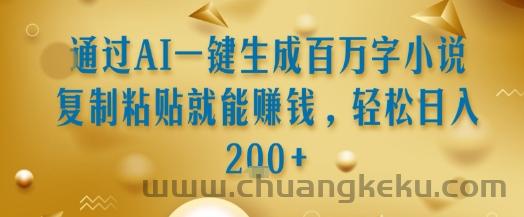 创客库 » 通过AI一键生成百万字小说复制粘贴就能挣钱,轻松日入2张+【揭秘】