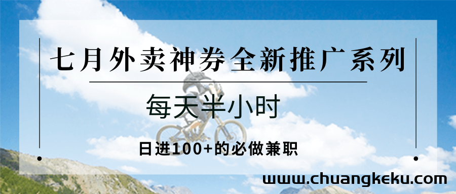 七月外卖神券全新推广系列;每天半小时,日进100+的必做兼职
