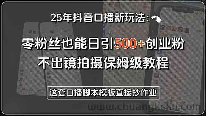 创客库 » (15384期)25年抖音口播新玩法:零粉丝也能日引500+创业粉,不出镜拍摄保姆级教程…