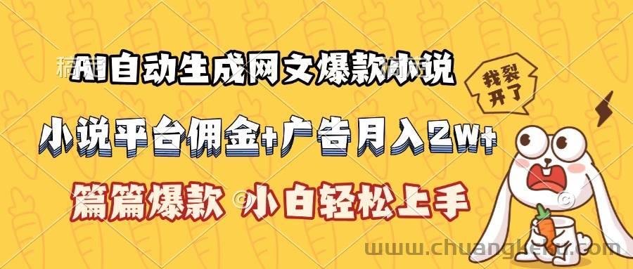 AI自动生成网文爆款小说,一键生成小说大纲、故事情节,每篇都是爆款,小说平台佣金加广告月入2w+