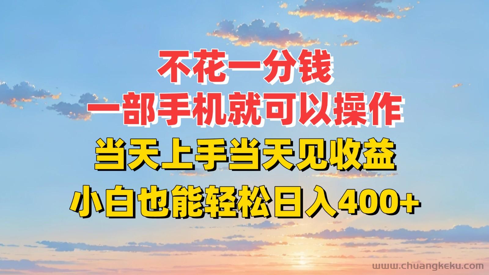 创客库 » 不花一分钱,一部手机就可以操作,当天上手当天见收益,小白也能轻松日入400+
