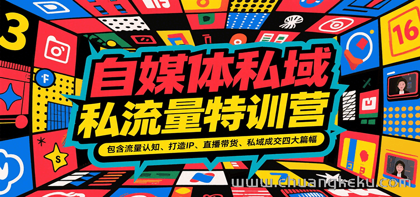 创客库 » 自媒体私域流量特训营,包含流量认知、打造IP、直播带货、私域成交四大篇幅