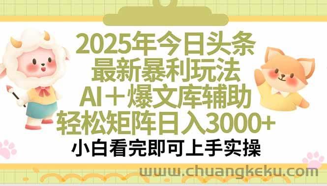 创客库 » (15421期)2025年今日头条最新暴利玩法,一键生成爆款,轻松实现矩阵日入3000+