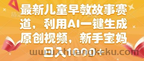 最新儿童早教故事赛道,利用AI一键生成,原创视频,新手宝妈日入1k+【揭秘】