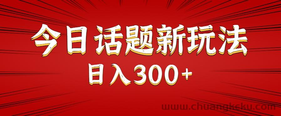今日话题新玩法,几分钟可以制作一个,多种变现玩法日入300+