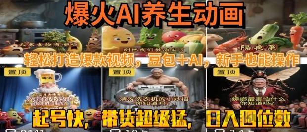 最新速成AI养生动画,轻松打造爆款视频,豆包+AI,日入四位数【揭秘】