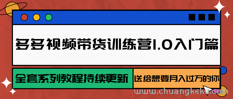 创客库 » 多多视频带货训练营1.0入门篇,全套系列教程持续更新,送给想要月入过万的你