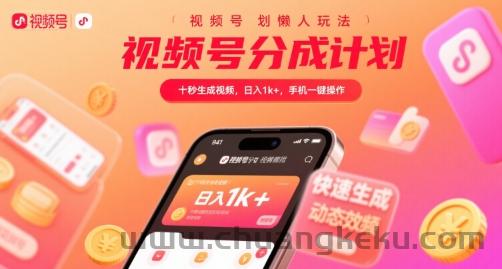 创客库 » 视频号分成计划懒人玩法,十秒生成视频,日入1k+,手机一键操作【揭秘】