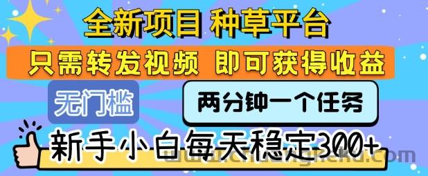全新项目 种草平台 只需要转发任务视频 即可获得收益 新手小白每天稳定3张+【揭秘】