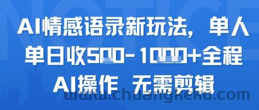 创客库 » AI情感语录新玩法,单人单日收5张+全程AI操作 无需剪辑