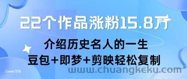 创客库 » 22个作品涨粉15.8W ,介绍历史名人的一生 , 豆包+即梦+剪映轻松复制