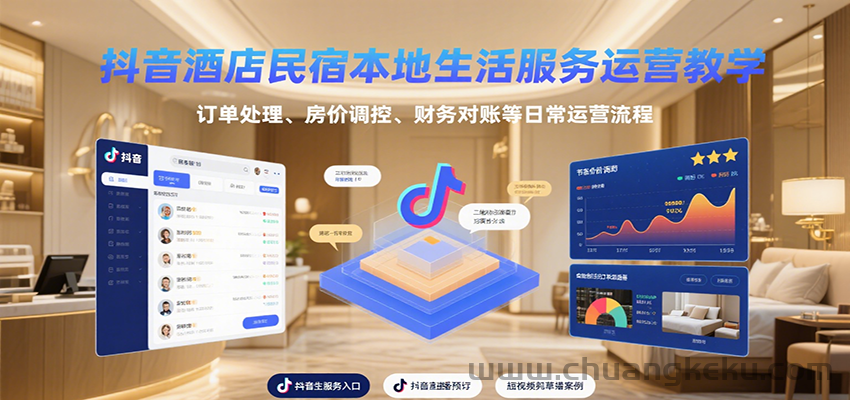 创客库 » 抖音酒店民宿本地生活服务运营教学,订单处理、房价调控、财务对账等日常运营流程