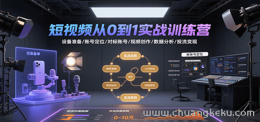 创客库 » 短视频从0到1实战训练营:设备准备/账号定位/对标账号/视频创作/数据分析/投流变现