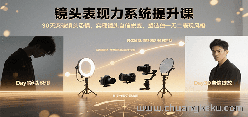 创客库 » 镜头表现力系统提升课,30天突破镜头恐惧实现自信蜕变,塑造独一无二表现风格