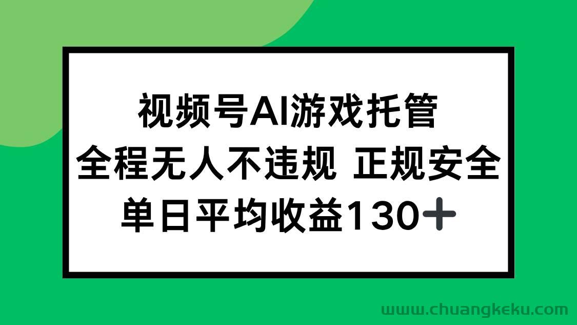 视频号AI游戏托管,全程无人不违规,单日平均收益130+