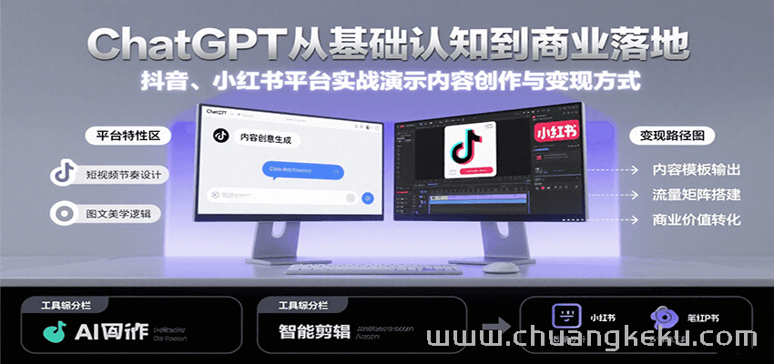 创客库 » ChatGPT从基础认知到商业落地,实战演示抖音、小红书等平台的内容创作与变现
