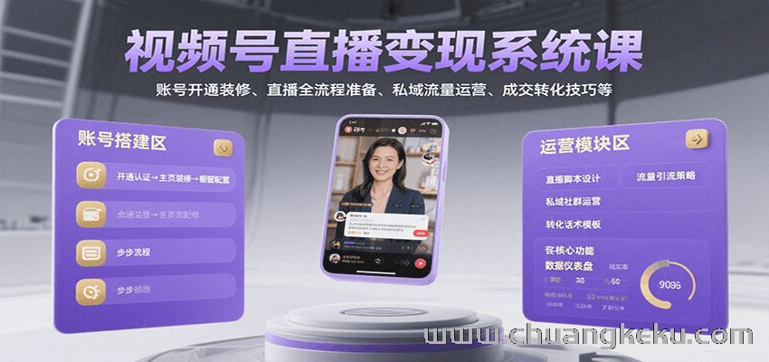 创客库 » 视频号直播变现系统课,账号开通装修、直播全流程准备、私域流量运营、成交转化技巧等