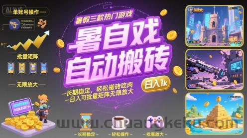 创客库 » 暑假三款热门游戏自动搬砖,长期稳定,轻松搬砖吃肉,日入1k ,可批量矩阵无限放大【揭秘】