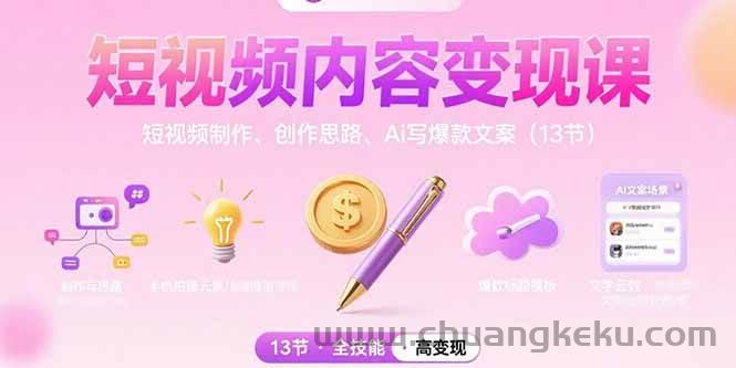 创客库 » (15581期)短视频内容变现课:短视频制作、创作思路、Ai写爆款文案(13节)