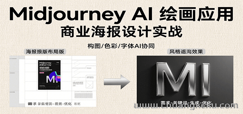 创客库 » Midjourney AI绘画应用,关键词指令解析、漫画头像制作、海报设计、3D人物生成等
