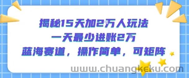 创客库 » 揭秘15天加2W人玩法,一天最少2万进账,蓝海赛道,操作简单,可矩阵