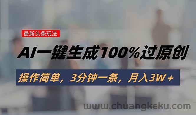 创客库 » (15605期)头条最新玩法,AI一键生成100%过原创,操作简单,3分钟一条,月入3W+