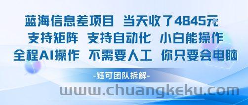 蓝海信息差项目当天收米1k+ 支持矩阵支持自动化小白能操作全程AI操作不需要人工你只要会电脑