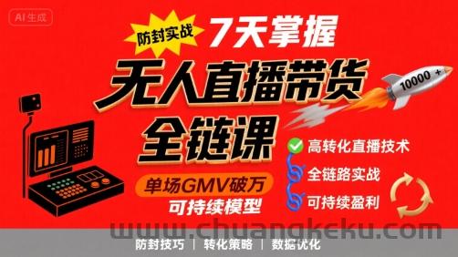 创客库 » 无人直播带货全链防封实战课,7天掌握高转化直播技术,实现单场GMV破万可持续模型
