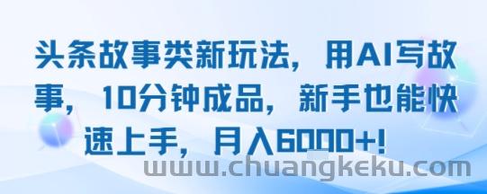 创客库 » 头条故事类新玩法,用AI写故事,10分钟成品,新手也能快速上手,月入6k+