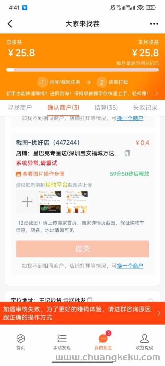 原理很简单,就是帮饿了么平台寻找优质商户,方便平台进行对接。通过做平台的任务,我们可以获得一定的佣金。与拍照任务不同,这个不用出门,在家就能做,工作内容就是去其它外卖平台截图或者录屏,花不了几分钟,然后提交审核即可。目前一单的话最低2块,视频盲盒是3-10块不等