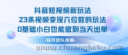 抖音短视频新玩法,23条视频变现六位数,0基础小白也能做到当天出单