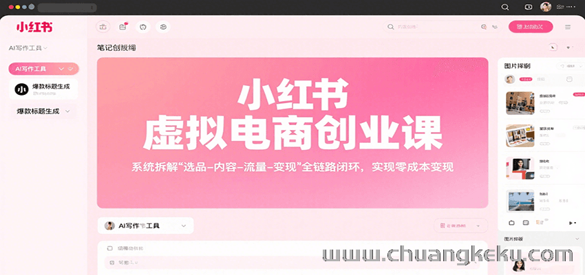 创客库 » 小红书虚拟电商创业课,系统拆解选品-内容-流量-变现,实现零成本变现