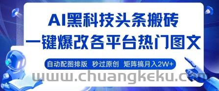 创客库 » AI黑科技头条搬砖,一键爆改各平台热门图文 自动配图排版,秒过原创,矩阵搞月入2W+【揭秘】
