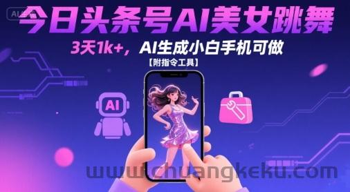 创客库 » 今日头条号AI美女跳舞,3天1k+,AI生成小白手机可做【附指令工具】