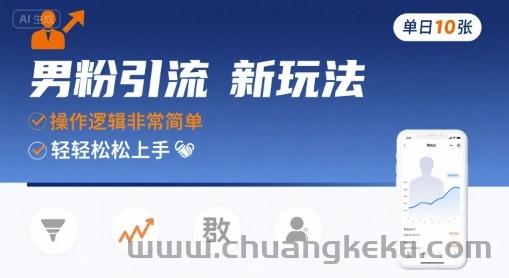 创客库 » 男粉引流新玩法,操作逻辑非常简单,单日10张轻轻松松