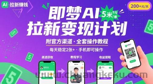 创客库 » 即梦AI拉新项目,一单5米,每天稳定收入2张+(附渠道+教程)