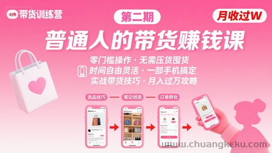 小红书带货第二期训练营,普通人月收过W的带货课,时间自由,零门槛无压货,一部手机即可操作