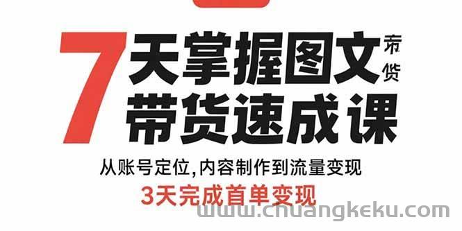 创客库 » (15731期)7天掌握图文带货速成课:从账号定位,内容制作到流量变现,3天完成首单变现
