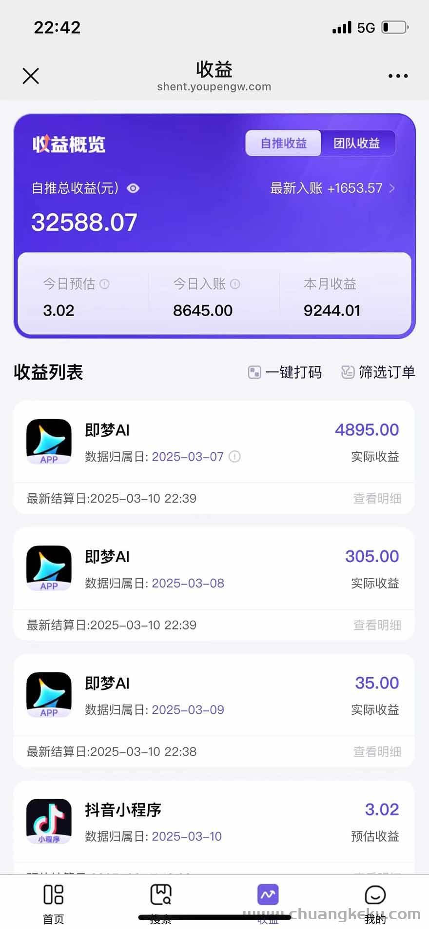 即梦是一款抖音旗下APP所以抖音上也有流量扶持,主要功能有文字生图片,图片生视频,AI模仿等,只要抖音账号有五个粉丝就可以有拉新的资格,拉新一个用户下载五块钱佣金,醒图七块。根据实测,万播放量收益在400-700之间,利润非常可观,今年是A1风口 大家抓紧入局。