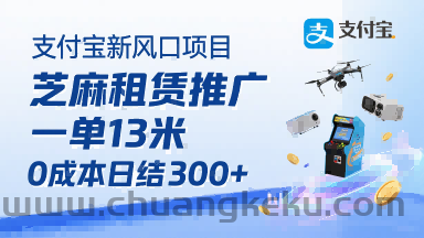 支付宝新风口项目,芝麻租赁推广,用户免押下单你躺挣,一单13米,0成本日结3张+,附专属口令获取通道