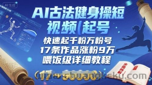 AI古法健身操短视频起号,快速起千粉万粉号,17条作品涨粉9W(喂饭级详细教程)