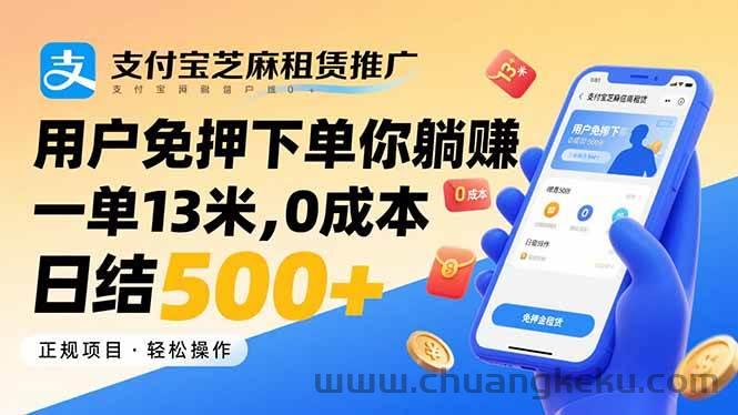 创客库 » (15787期)支付宝芝麻租赁推广,用户免押下单你躺赚,一单13米,0成本日结500+