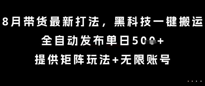8月带货最新打法,黑科技一键搬运,全自动发布单日5张+,提供矩阵玩法+无限账号【揭秘】