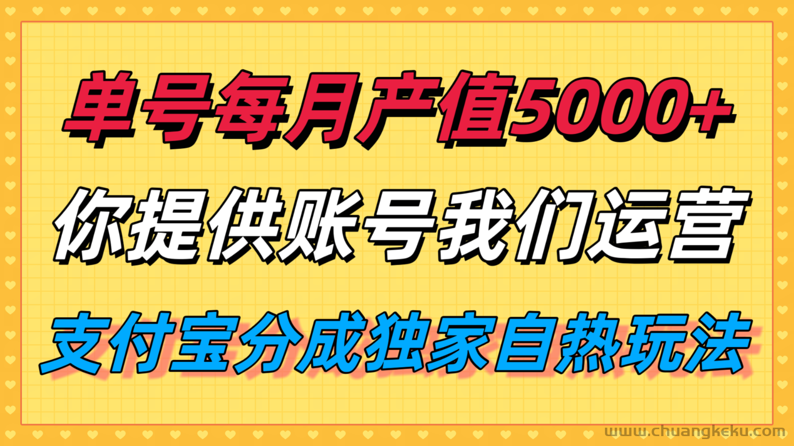 创客库 » 单月产值5000+,支付宝分成代运营,你提供账号坐等分钱,我们帮你运营