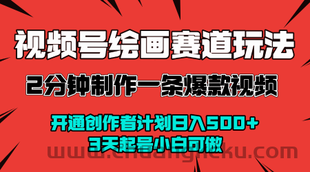 创客库 » 视频号绘画赛道暴力变现玩法,2分钟制作一条爆款视频,开通创作者计划日入多张,3天起号小白可做