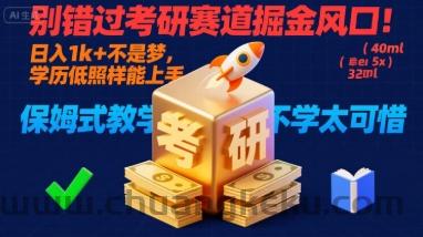 创客库 » 别错过考研赛道掘金风口!日入 1k + 不是梦,学历低照样能上手,保姆式教学包会,不学太可惜【揭秘】
