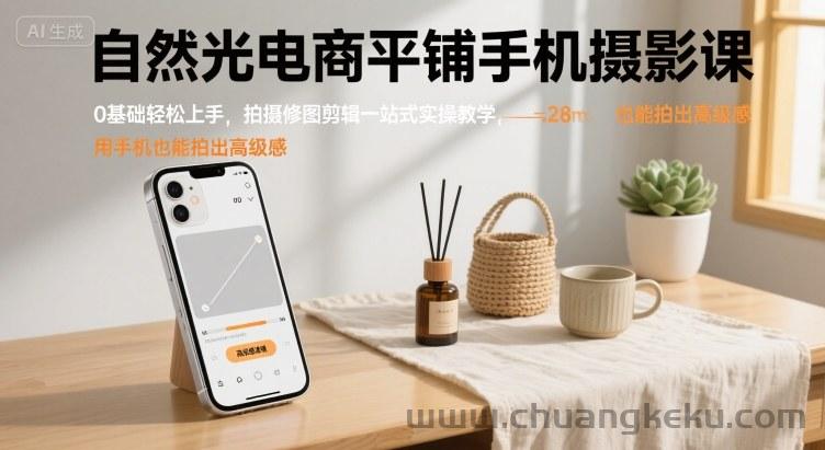 自然光电商平铺手机摄影课,0基础轻松上手,拍摄修图剪辑一站式实操教学,用手机也能拍出高级感