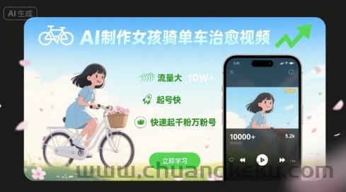 创客库 » AI制作女孩骑单车治愈视频,流量大,起号快,快速起千粉万粉号