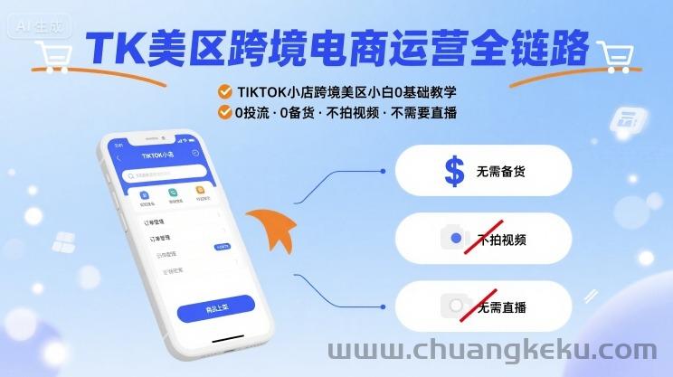 创客库 » TK美区跨境电商运营全链路,TIKTOK小店跨境美区小白0基础教学,0投流0备货不拍视频不需要直播