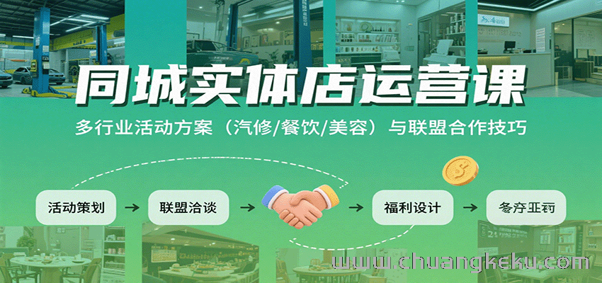 创客库 » 同城实体店运营课:多行业活动方案(汽修/餐饮/美容)与联盟合作技巧